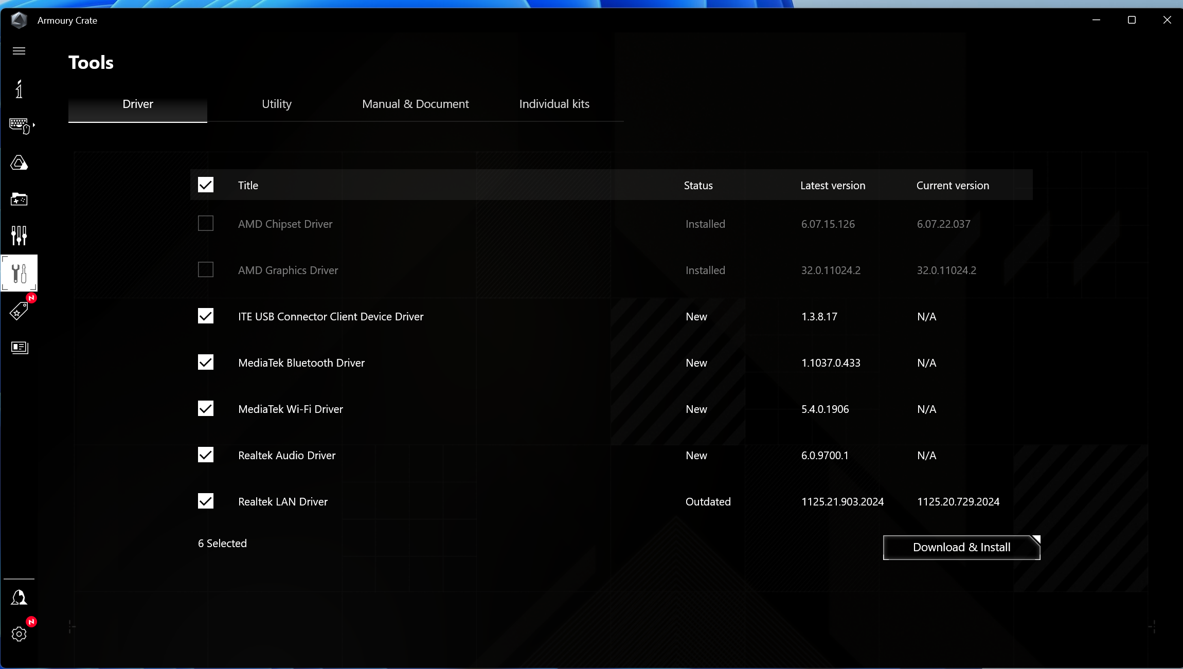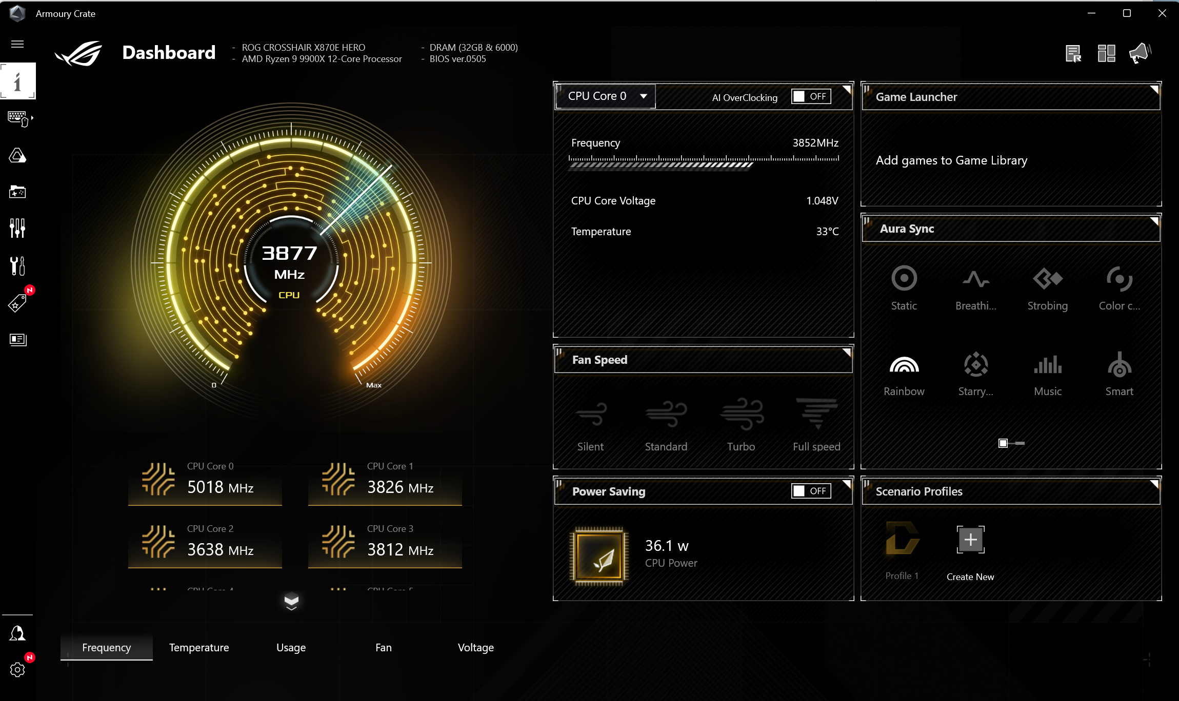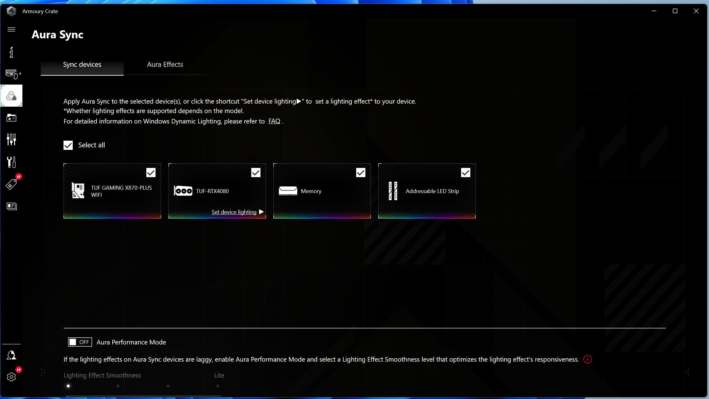 Armoury Crate on the tiny B850-I Gaming follows the ROG-inspired theme. Several applications exist for various functions, ranging from RGB lighting control, audio, system monitoring, and overclocking, etc. It's also worth mentioning the included software. When purchasing Asus motherboards, you receive a sixty-day AIDA64 license - a useful application for stress and performance testing. Asus’ Driver Hub (get your updated drivers here!) and a custom version of Hwinfo for real-time monitoring are also helpful applications. We’ve captured a few screenshots of the applications below.