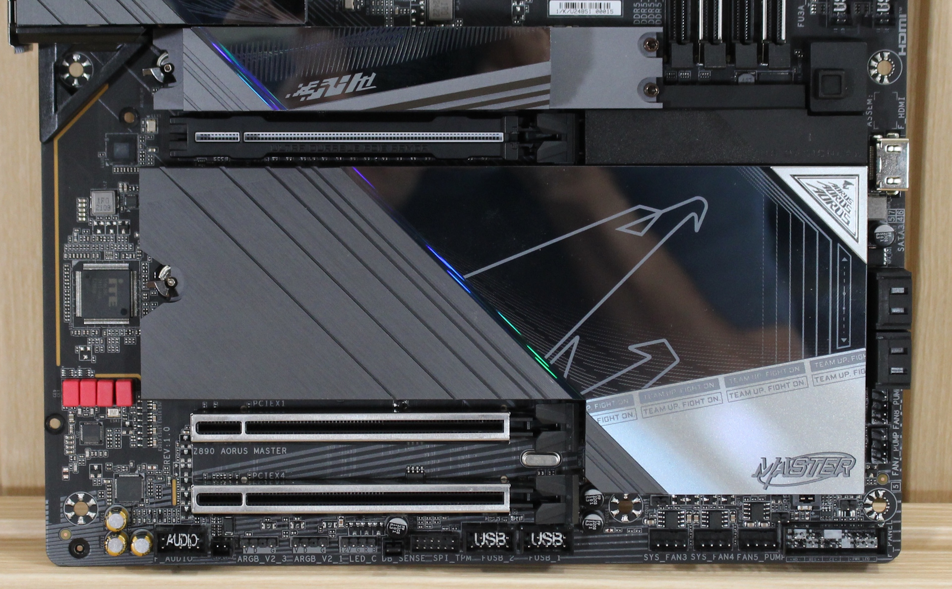 Let’s take a look at a typical higher-level motherboard for an example of connector and port types. We chose the Gigabyte Z890 Aorus Master for its many modern motherboard features (some of which you may not need) and its contrasting color design, which makes it easier to see smaller board components.