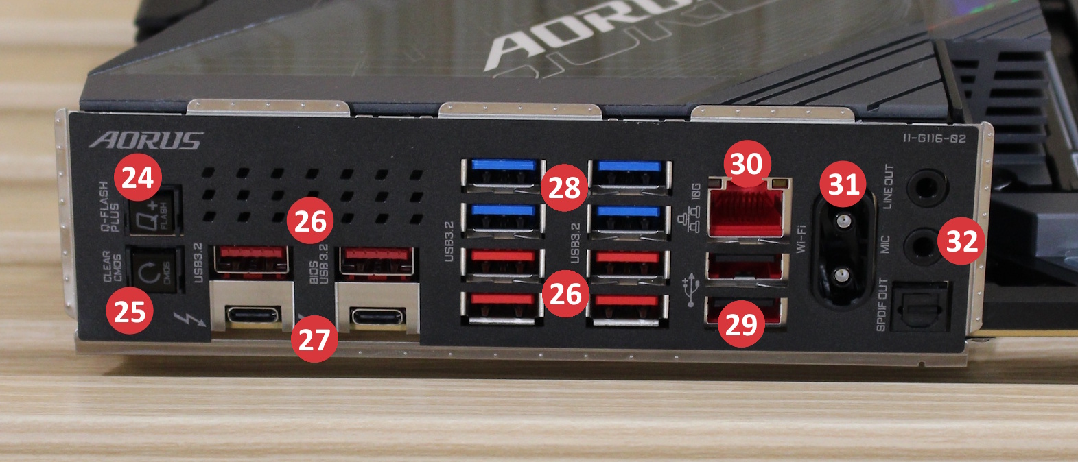 28. USB 3.2 Gen 1 5 Gbps Type-A Ports | 29. USB 2.0 480 Mbps Type-A Ports |