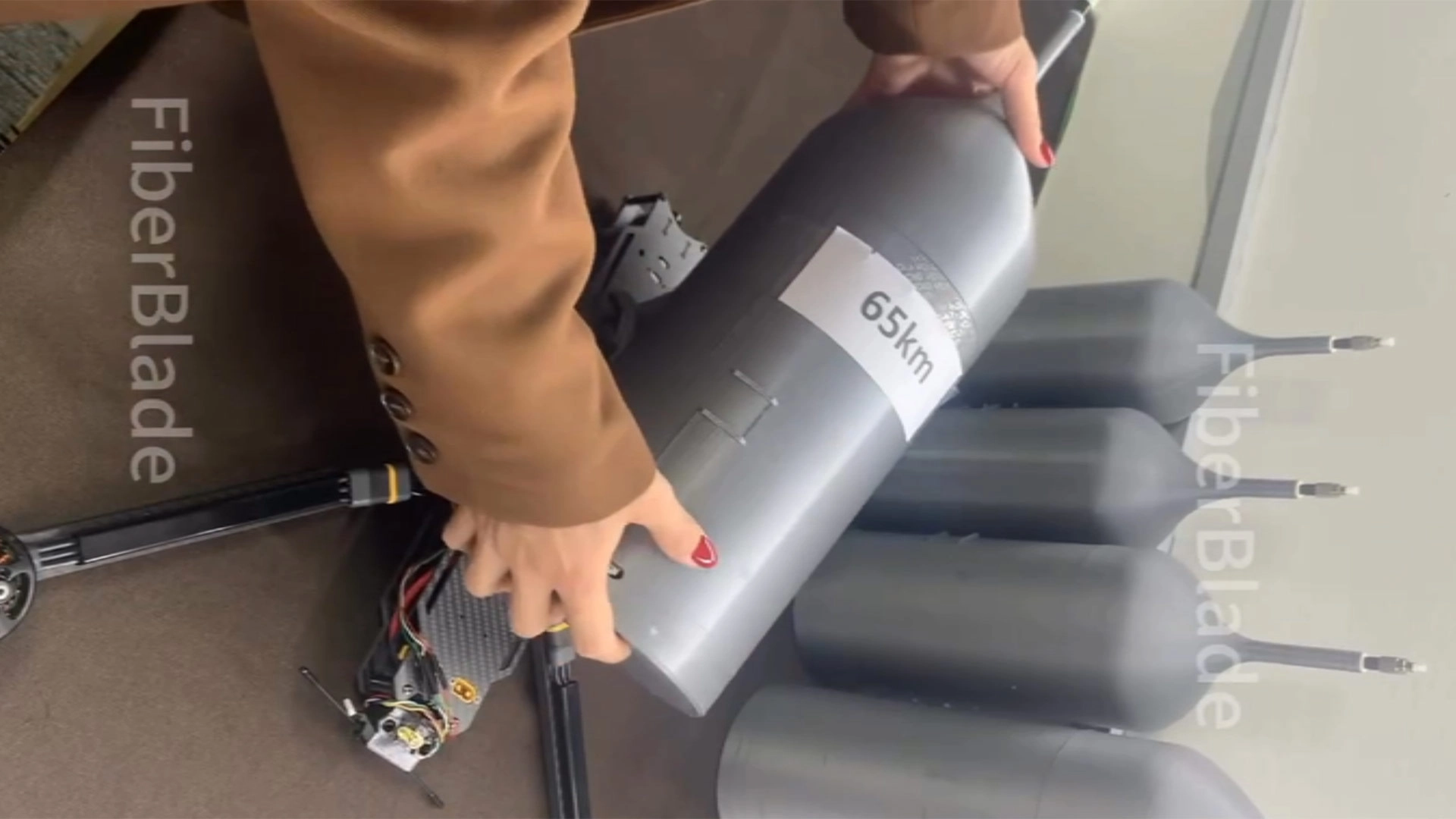 Videos and images purportedly showing spools carrying as much as 65km (~40.4 miles) of optical fiber have been shared on Russian social media channels. Previously, we reported on Ukraine-based prototypes being tested at up to 50km (~31 miles). Tethered FPV drones are hardened against electronic warfare and allow for deep, precise strikes into enemy territory. Obviously, having a longer reach (without other compromises) is an advantage.