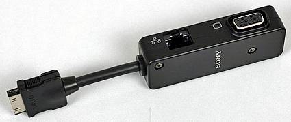 This adapter plugs into the port replicator connector on the UX180P. It has LAN and VGA monitor connections. The adapter is very useful for such tasks as PowerPoint presentations. It's designed to replace the port replicator where limited peripheral conne