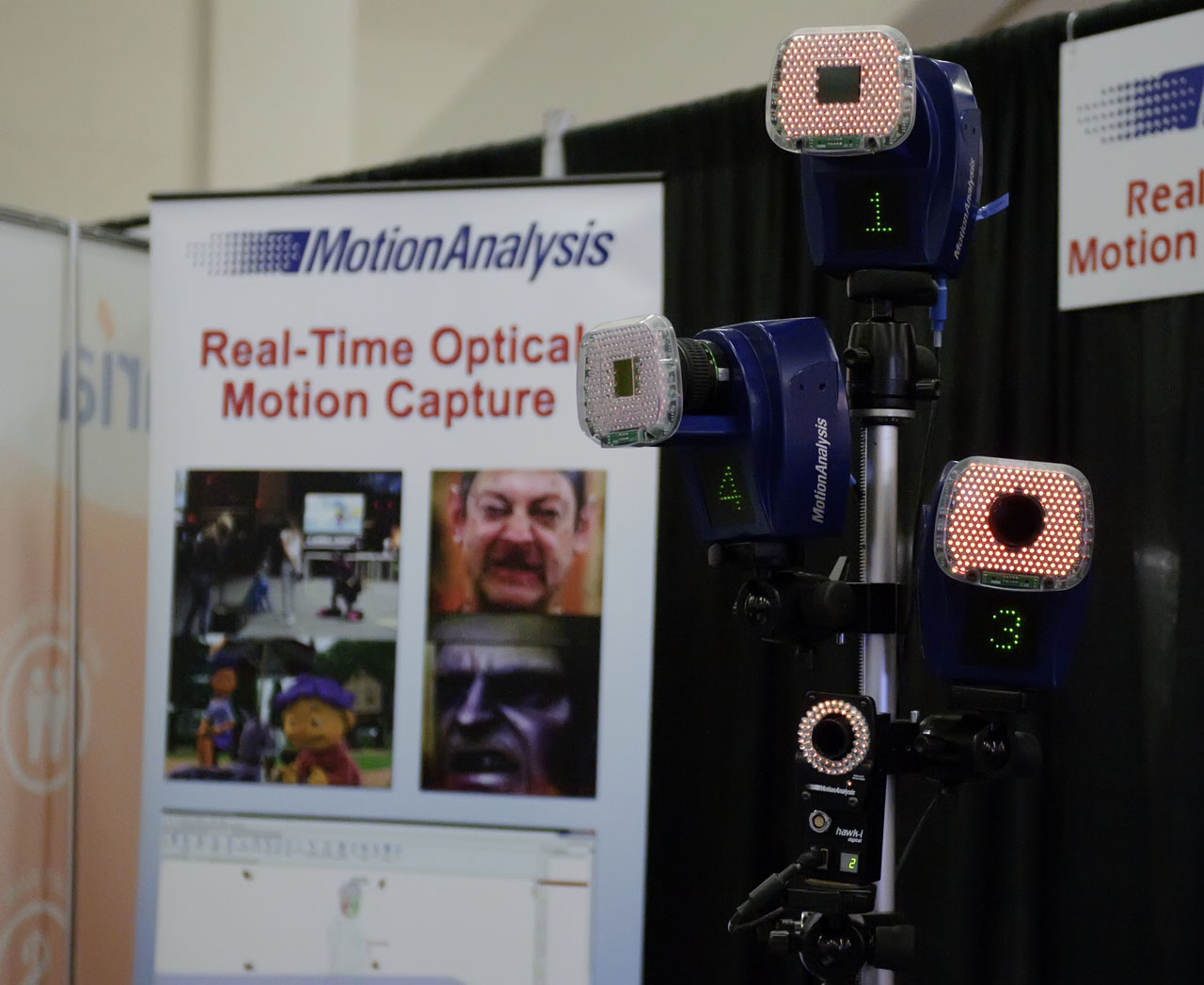 Real-time motion capture. Notice how the virtual figure in the tablet PC replicates the pose of the model.