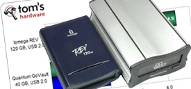 We looked around and found two backup solutions that might not be capable of storing huge amounts of data, but they were designed to address backup requirements medium capacities in the small business segment. Iomega introduced its REV drive in 2004, but offers a modernized version today. The Quantum GoVault is based on similar cartridges, reaching slightly higher capacities. Unlike traditional business backup solutions, which are often based on tape technology, Iomega and Quantum rely on hard drives, or at the least very, similar technology.