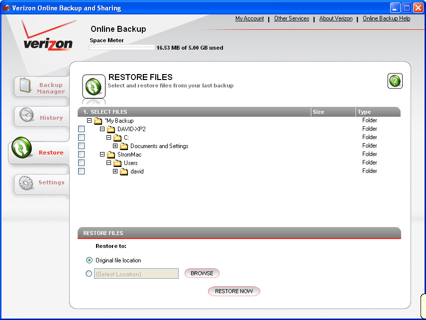 Verizon also offers the ability to protect more than one computer per account. You can install the client software on as many computers as you wish, and log them all into the same account. Each computer's file collection will be identified by the computer name so you can easily identify where each file came from.