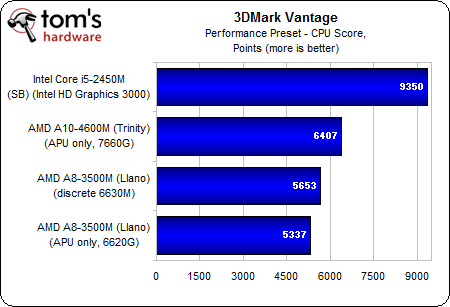 Since the Core i5-2450M isn’t capable of DirectX 11, we’re forced to shift down to 3DMark Vantage: