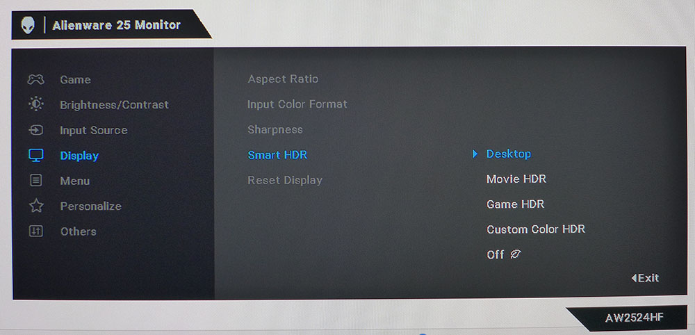 I observed the same accuracy and image quality in SDR games like Tomb Raider and Call of Duty WWII. The extra red manifests in fuller flesh tones and warmer hues which adds to the sense of dimension. I tried the Standard picture mode, uncalibrated, and the Custom Color mode with calibration. I preferred the latter because it was slightly more saturated, even though its contrast is a tad lower. Others may disagree, but the choice is there. The AW2524HF can certainly be enjoyed without calibration.