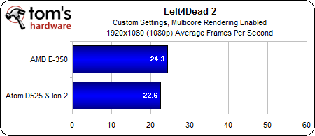 Left 4 Dead 2 is playable on the E-350, and on the verge of playable on the D525/Ion 2 platform.