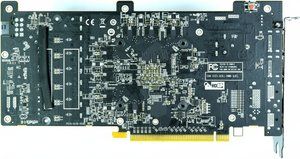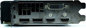 Similar to MSI's complement of display outputs, Sapphire exposes one DVI-I connector, two DisplayPort 1.4-ready interfaces, and two full-sized HDMI 2.0 ports (perhaps in a nod to the folks with VR HMDs). Several openings allow waste heat to pass through.