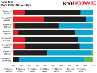 We went into this one knowing that DirectX 11 games tend to go Nvidia’s way. Indeed, GeForce cards take the top four spots, broken up only by AMD’s new Radeon RX 580.