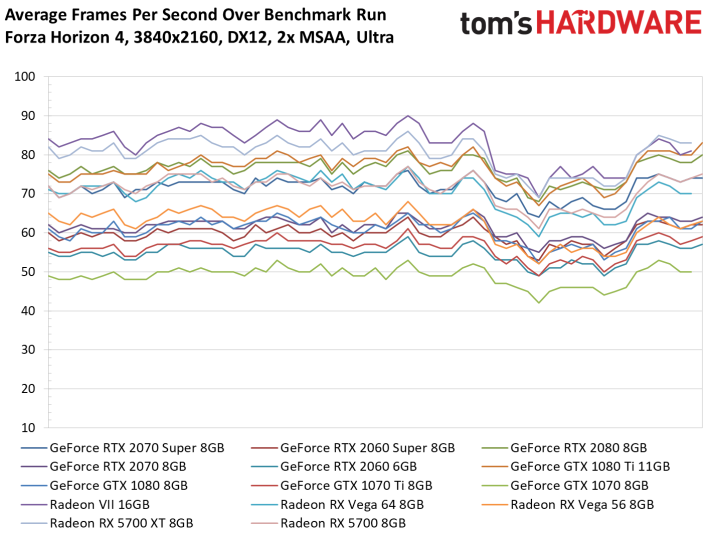 The pursuit of playable performance at 3840 x 2160 with quality settings maxed out takes us back a few years. Nvidia’s GeForce GTX 1080 came close to making 4K an enjoyable experience, while the 1080 Ti pushed performance up one tier higher. With Radeon RX 5700 XT nestling in between those two cards, smooth frame rates at 4K should be—and is, in most games—an achievable target.