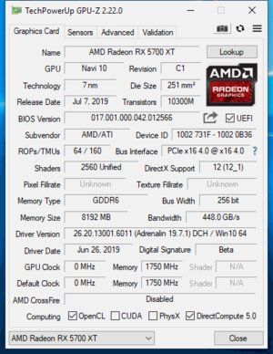 | Architecture (GPU) | RDNA (Navi 10) | Turing (TU106) | RDNA (Navi 10) | Turing (TU106) |