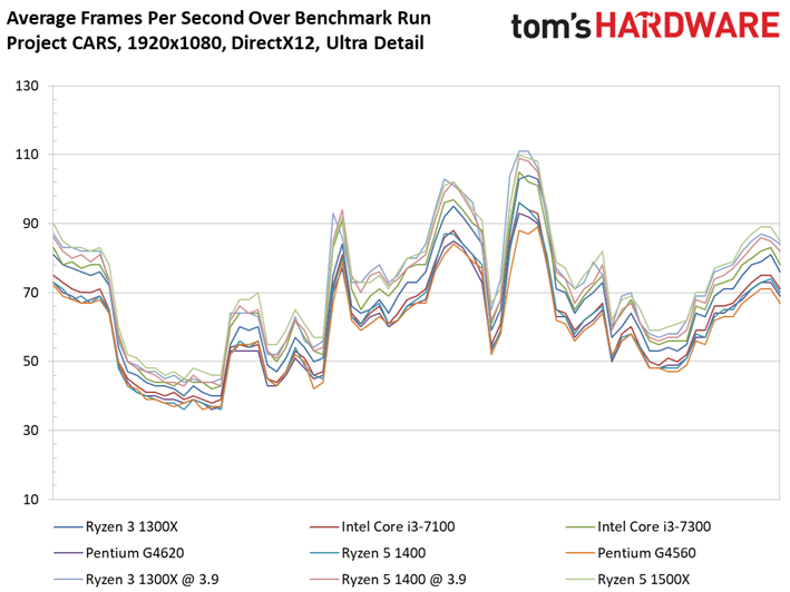 Intel's decision to add Hyper-Threading to its Pentium family, which many enthusiasts perceived as preparation for the Ryzen onslaught, pays dividends in this title. Meanwhile, those Core i3s remain convincing.