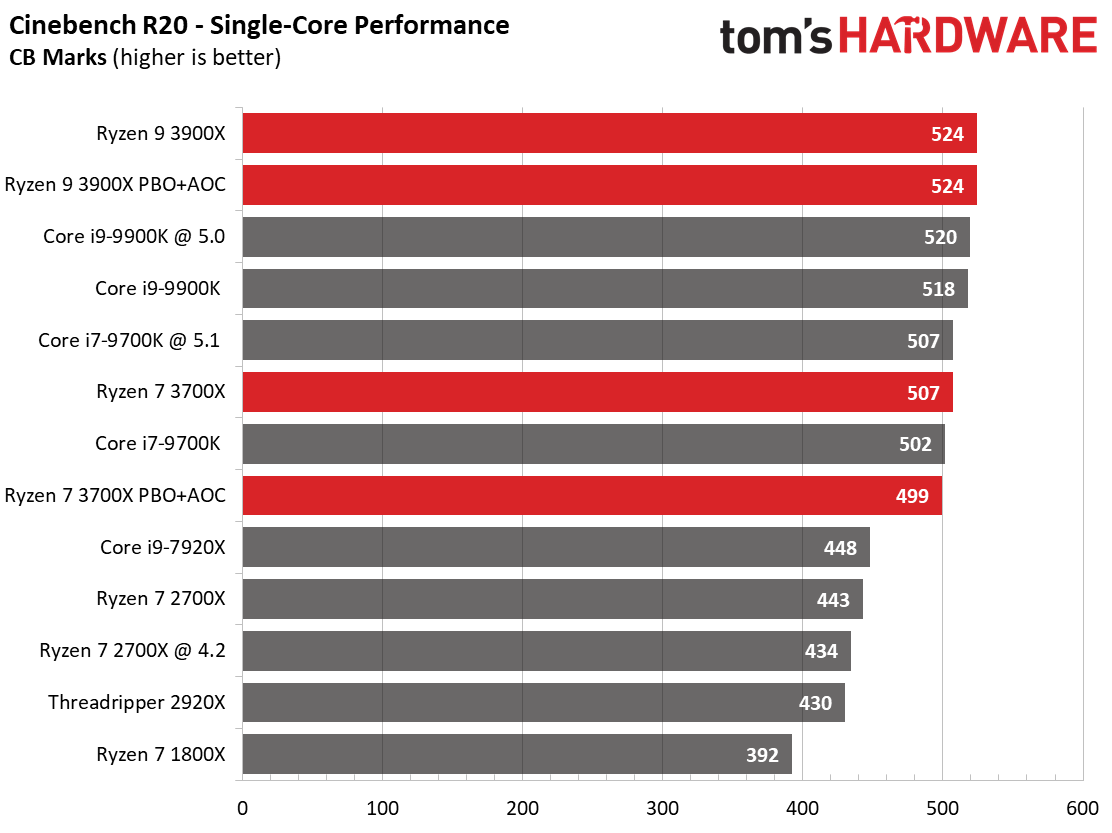 The 3900X, when allowed to stretch its legs with Precision Boost Overdrive (PBO), significantly outperforms the previous-generation Ryzen 7 2700X, and in many cases is just a few to several frames per second (fps) behind the i9-9900K. This change yields an average of 4.3% performance difference between the two CPUs in our testing.