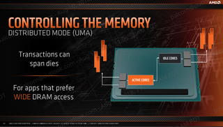 To combat the potential for performance regression as a result of its "go-wide" approach, AMD devised an interesting solution: it introduced a memory access switch that you can toggle via motherboard BIOS or the Ryzen Master software. The Local and Distributed settings flip between either NUMA (Non-Uniform Memory Access) or UMA (Uniform Memory Access), same as they did for AMD's first-gen Threadripper CPUs.