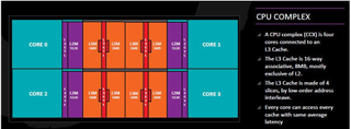 Although each core in a four-core CCX can access the local cache with the same average latency, trips to fetch data in adjacent CCXes incur a latency penalty. Communication between threads on cores located in disparate CCXes also suffers.