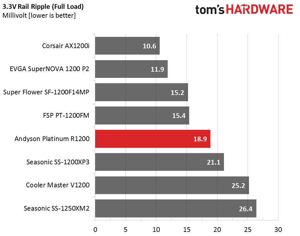 Ripple suppression is excellent, landing close to the top implementations we've tested in this category. Andyson proves that it has more than just the required know-how; the company also has the facilities and resources to build a truly high-end PSU able to match the best of its competition. We are surprised to see a company with no presence in this category make a dynamic entry.