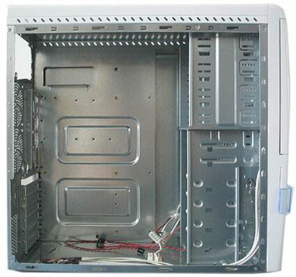 Inside the case, there is nothing new or out of the ordinary. The mount for the drives is a built-in cage with space for four 5.25" and six 3.5" drives. Long PCI expansion cards cannot be used in this case. The 4-way fan control is stuck unceremoniously to floor of the case.