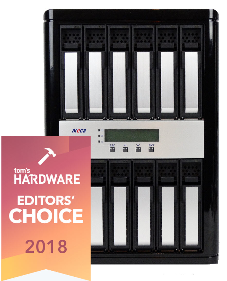 We recently published a review of the LaCie 12big. In our review, we talked about the limited competition in the Thunderbolt storage space. The 12big and the smaller 6big target professional users, but they use chip technology borrowed from consumer storage. LaCie has invested a lot in Thunderbolt 3 products, but we could only find older LaCie Thunderbolt 2 storage systems for comparison. That's when we found the Areca ARC-8050T3 series that comes with a varying number of drive bays, including a 12-bay model that is a direct competitor to the LaCie 12big. Unlike its competitors, the Areca model uses enterprise-class RAID controller technology.