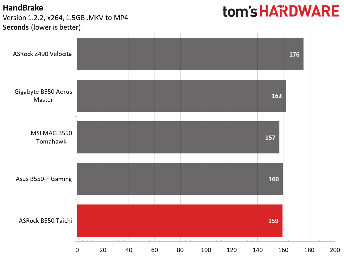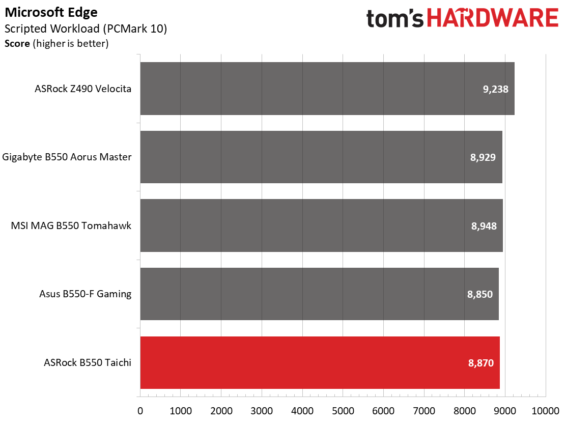 During our gaming and 3DMark tests, the B550 Taichi performed similarly to the other B550 boards we’ve tested so far.
