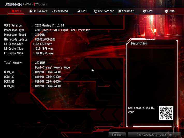 ASRock’s X370 UEFI options are consistent from product to product, and the main difference between the Taichi and the X370 Gaming K4 is the synchronization of the box art with the UEFI. However, this time around we'll provide a little more depth to the options. For starters, CPU frequencies are listed in the table or are accessible via the “+/-” keys in 50MHz increments.
