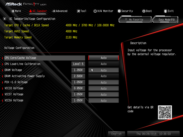 The B360 Gaming K4's firmware opens to ASRock’s EZ Mode interface, which is good enough for most users since the chipset blocks most overclocking options. Boot priority and fan control modes can be set here, and there are shortcuts for Instant Flash firmware updating, Internet Flash firmware downloading and FAN-Tastic Tuning fan-map creating utilities. Striking the keyboard’s F6 key brings users to its Advanced Mode GUI.