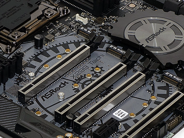 In spite of its lower cost, the X299 Taichi adds a third M.2 slot, and its slot is driven by the CPU. While it's a superior connection on boards that have 28 or 44 lanes, dedicating those four lanes to a storage interface knocks the SLI capability out of 16-lane Kaby Lake-X configurations. That seems a little harsh since the least-expensive X299 motherboards and processors will likely appeal to a certain segment of gamers, but the non-shared storage bandwidth will likely appeal to anyone who doesn’t choose a Core i7-7740X or lesser LGA 2066 CPU.