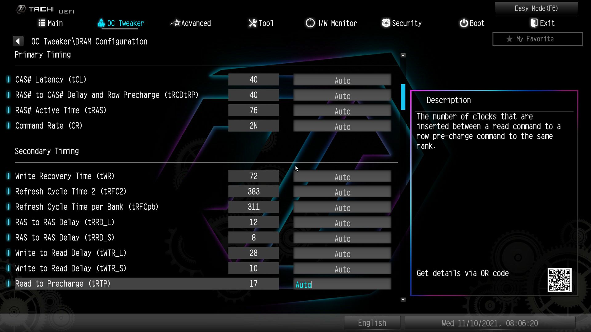 ASRock’s BIOS, as the other Z690 boards before it, keeps the same format as the last generation. An EZ Mode displays high-level information, including CPU clock speeds and temperatures, fan speeds, storage information, and more. Advanced Mode has several headers across the top that drop down additional options. The BIOS is easy to maneuver in and laid out logically. There is a bit of digging for some options for overclocking, but overall, it’s a user-friendly BIOS with more options than most will ever use.
