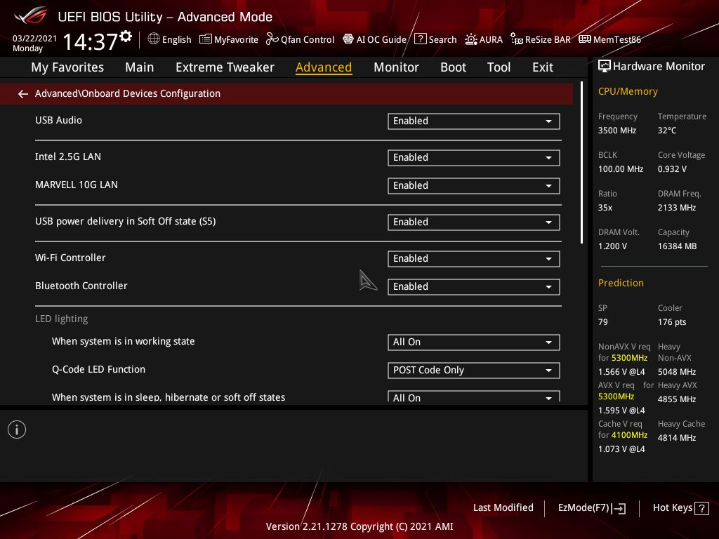 Asus’ BIOS for Z590 looks the same as found on previous-generation Z490-based motherboards. Teh company uses a red background with white writing on these ROG boards -- a theme we’re all familiar with at this point. Asus starts in “EZ” mode where it presents some high-level information and a couple of adjustable options such as enabling XMP and Boot priority. Advanced Mode has a slew of BIOS options, many of which most users will not touch. Asus organized the BIOS well and many of the common functions, particularly overclocking functionality, are easily accessible without drilling deep into the pages. Overall, Asus offers a user-friendly BIOS with enough options to keep the most advanced user busy.
