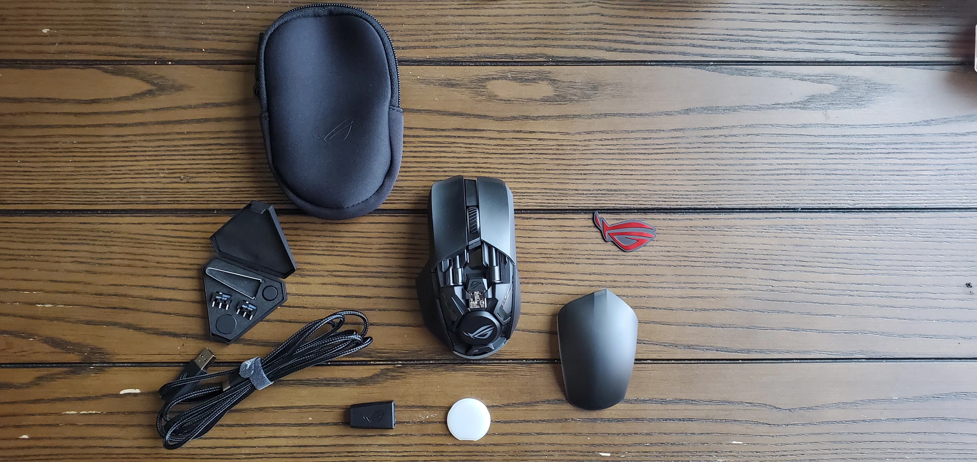 The ROG Chakram weighs 4.29 ounces without its cable. For comparison, the Razer Basilisk Ultimate, another pricey wireless gaming mouse with a dongle option (no Bluetooth), is 3.77 ounces, and the Rocccat Kain 200 Aimo wireless mouse is only 3.70 ounces. But there are heavier wireless clickers out there, like the 4.96-ounce Corsair Dark Core RGB Pro.