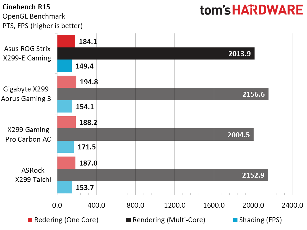 The point of overclocking memory is to get more performance, and the Strix X299-E Gaming did that spectacularly as seen in the above chart. On the other hand, we’ve seen similar results from half of the last 16 boards we've tested. As usual, price similarity is the factor that limits the range shown in our comparison chart.