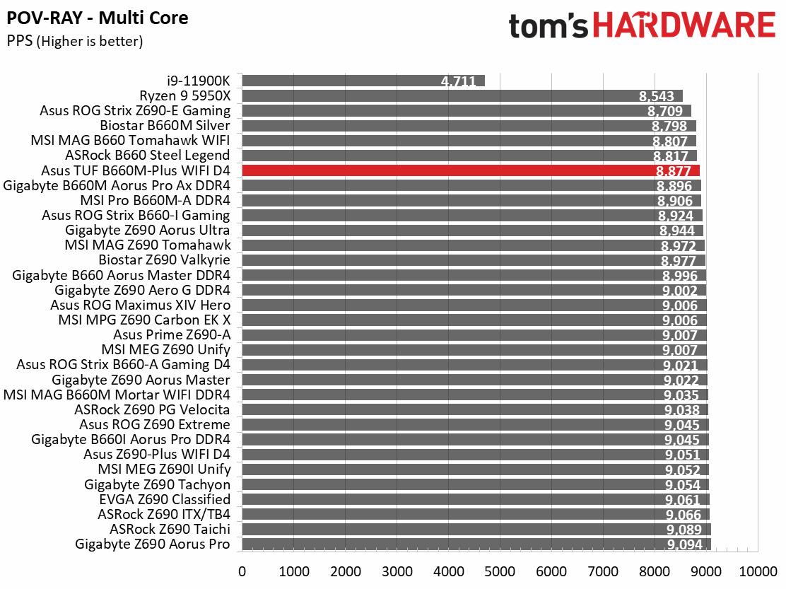 After looking at the Asus, my board of choice is still the MSI MAG B660M. At $10 cheaper than the Gigabyte and the Asus B660M-Plus WIFI D4, you get better audio and more SATA ports. If you’re into the all (or mostly) black aesthetic and prefer to have integrated RGBs, the TUF is the right option. ASRock aside, the prices for these boards are remarkably similar; each provides its own reason to be your next motherboard. The Asus TUF Gaming B660M-Plus WIFI D4 provides a solid and capable platform to build your Alder Lake-based system around but, like the Gigabyte, it doesn’t stand out as a hands-down winner among its peers.