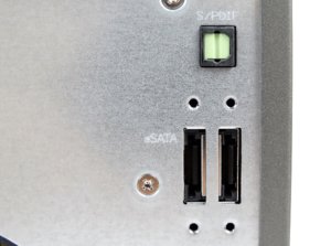 As mentioned, one HDMI port and S/PDIF connectivity address multimedia applications in home theaters. Two eSATA ports facilitate expansion through external add-ons.