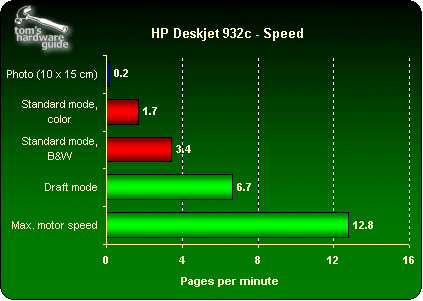 Mechanically speaking, the Deskjet 932c does not move like lightning. Only the Stylus Photo 820, after all a device dedicated to photography, turns out slower. So nothing to get excited about.