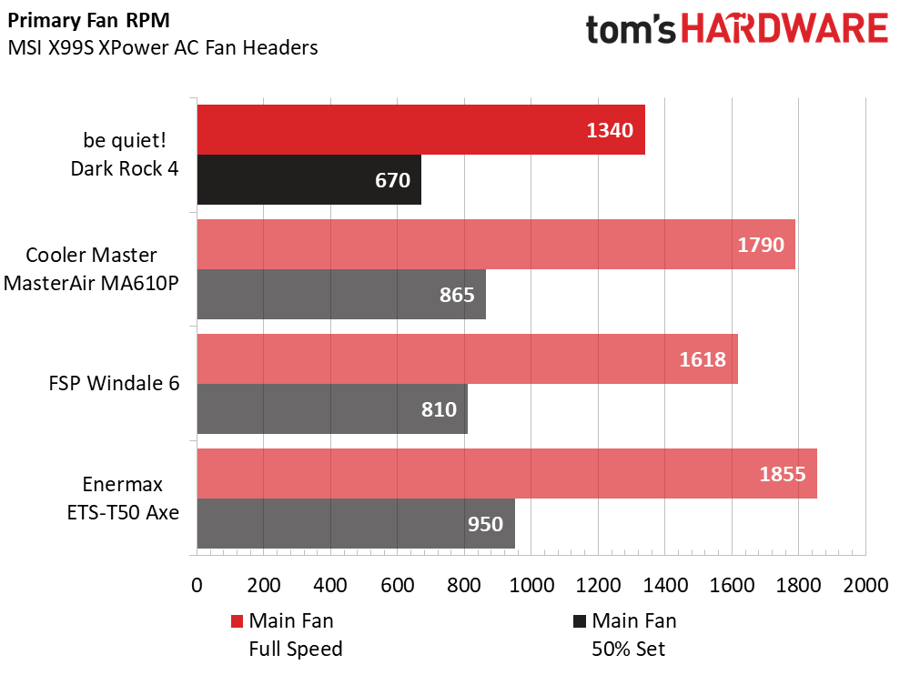 While the Dark Rock 4 might have just missed on overall thermal readings, it does so at the lowest fan speeds of the group. This would seem to indicate that the pairing of the QuietWings fan with the be quiet! cooling tower is more than just a happy circumstance.