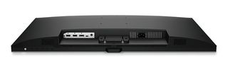 The monitor's side profile is fairly slim, with a smooth taper across the back, uninterrupted by grille work. Ventilation comes from two large downward-facing ports on the bottom and a barely-visible strip up top to exhaust heat. The two speakers fire down at the desktop and deliver reasonable volume in the high frequencies. But with little bass, they can sound harsh if you turn them up too high.
