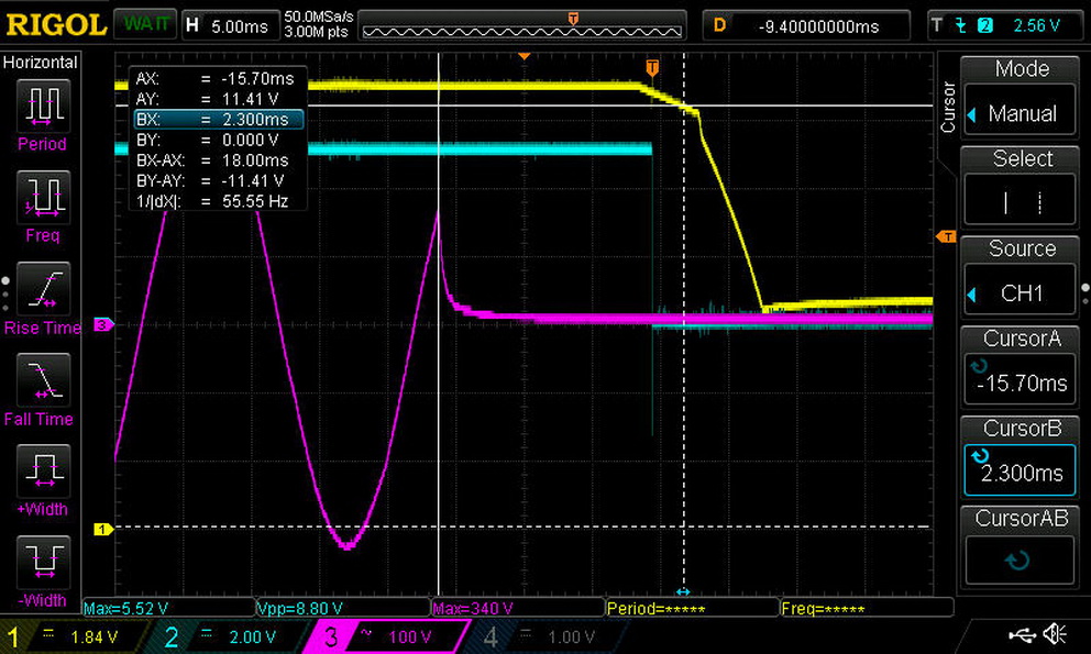 Measured hold-up time was over 17ms, while the power-good signal's hold-up time came close to 16ms. Most important, it was accurate.
