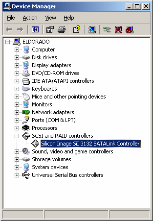 After installing the eSATA cards drivers, I verified the installation by going to the Device Manager and verifying that there were no errors.