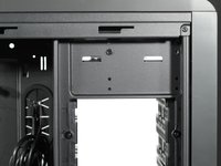 Without the front fan, all but the bottommost drive bays can be converted to the 5.25-inch format by simply and effectively refastening some screws. The space gained by removing the appropriate drive bay can be used to accommodate longer graphics cards.