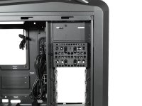 The Cosmos SE offers space for three 5.25-inch drives, even though only the top two bays are usable in the stock configuration. The two side retention elements of the hard drive cage need to be reinstalled at a 90-degree angle to use the third one, which results in the loss of two 3.5-inch drive bays and the space for the top-front fan.