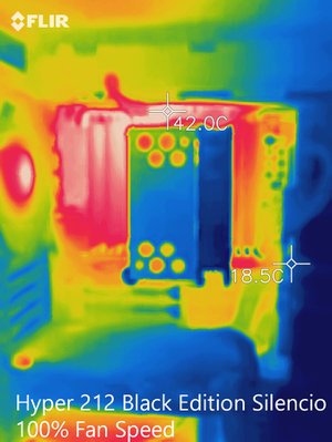 Thermal imaging shows a very similar tale between both the Hyper 212 RGB Black Edition and its RGB counterpart that aligns exactly with the thermal performance we saw earlier.