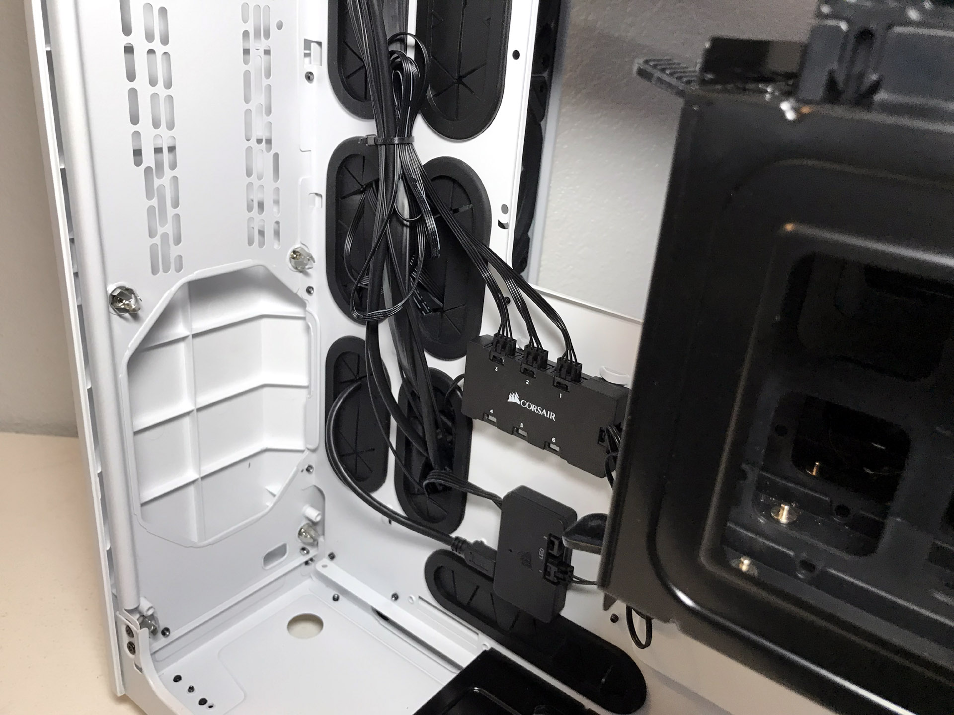 Corsair includes four 120mm fans; three installed LL120 addressable RGB LED fans in the front and one non-RGB 120mm fan in the rear. The Corsair Lighting Node PRO controls all three included 120mm fans and has enough additional headers to power another three fans, all through the company's proprietary iCUE software.