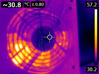 Toward the end of the cross-load tests, we took some photos of the PSU with our modified FLIR E4 camera that delivers 320x240 IR resolution (76,800 pixels).