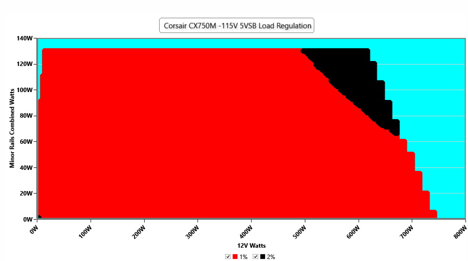 To generate the following charts, we set our loaders to auto mode through custom-made software before trying more than 25,000 possible load combinations with the +12V, 5V, and 3.3V rails. The deviations in each of the charts below are calculated by taking the nominal values of the rails (12V, 5V, and 3.3V) as point zero. The ambient temperature during testing was between 30 to 32 degrees Celsius (86 to 89.6 degrees Fahrenheit).