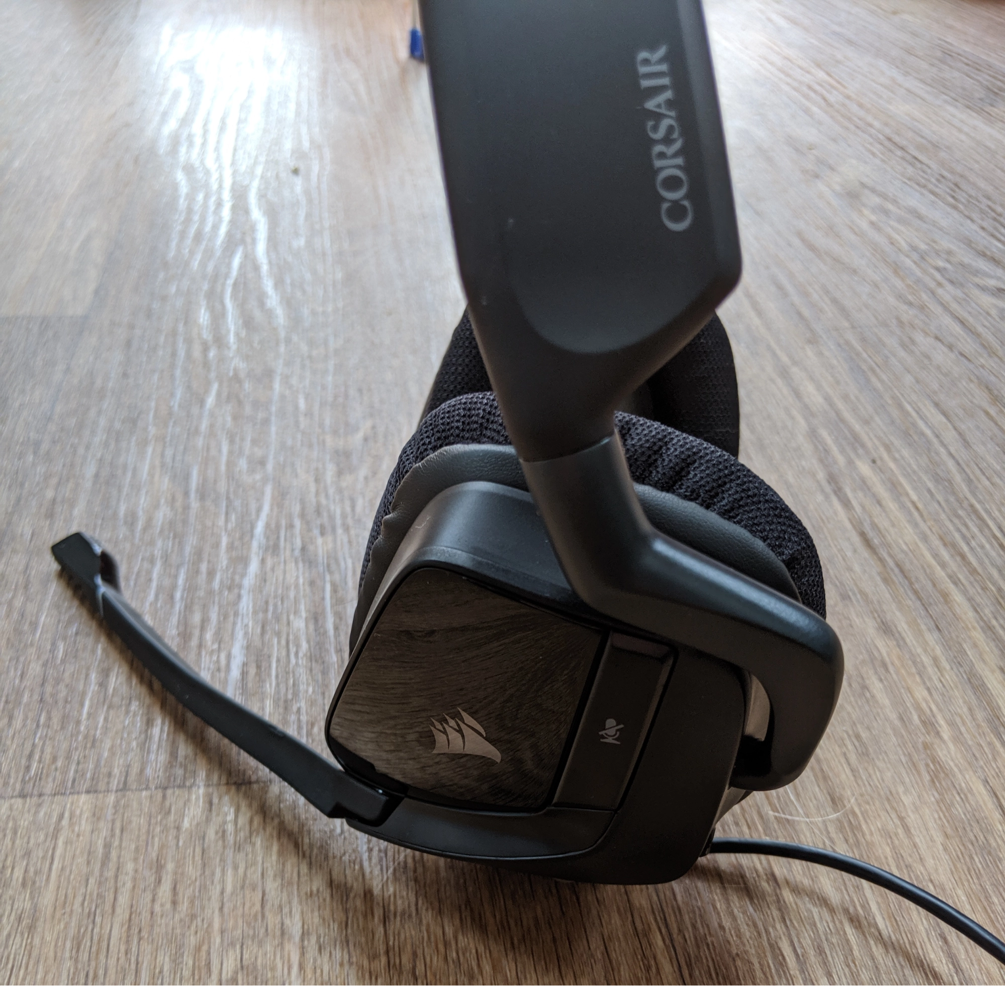 The left earcup features the mic mute button, but I'm displeased with its placement, since it can easily be hit accidentally when putting on or taking off the headset. Luckily, there's that light band.