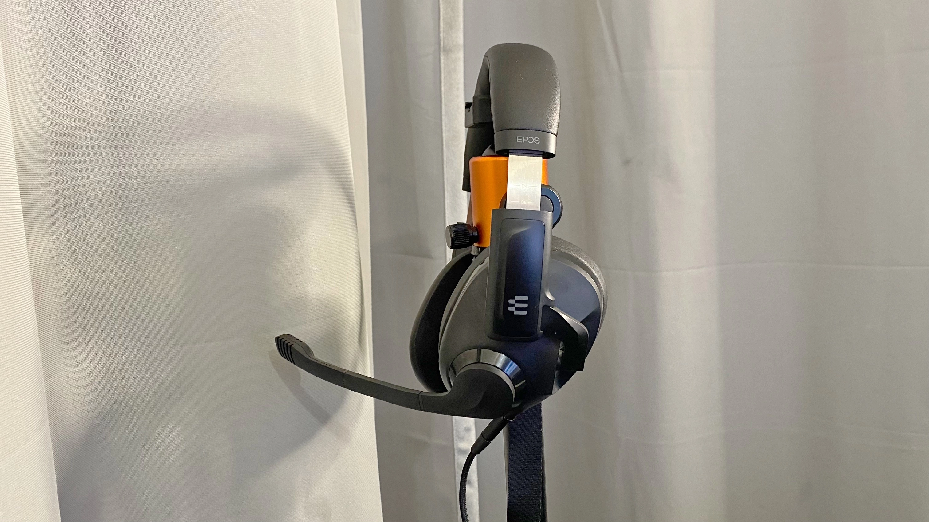 The Epos H3’s are stylishly elegant in Onyx Black as tested but are also available in Ghost White. Each ear cup holds an Epos logo, and the right ear cup has a built-in volume control knob that is responsive and with smooth controls easily activated by my thumb. On the left ear cup is the 3.5mm audio connection jack. The microphone is also on the left ear cup and pulls down nicely into place with a solid click to let you know it’s in place and ready to go. Lifting it back up conveniently mutes the microphone, so there are no embarrassments.