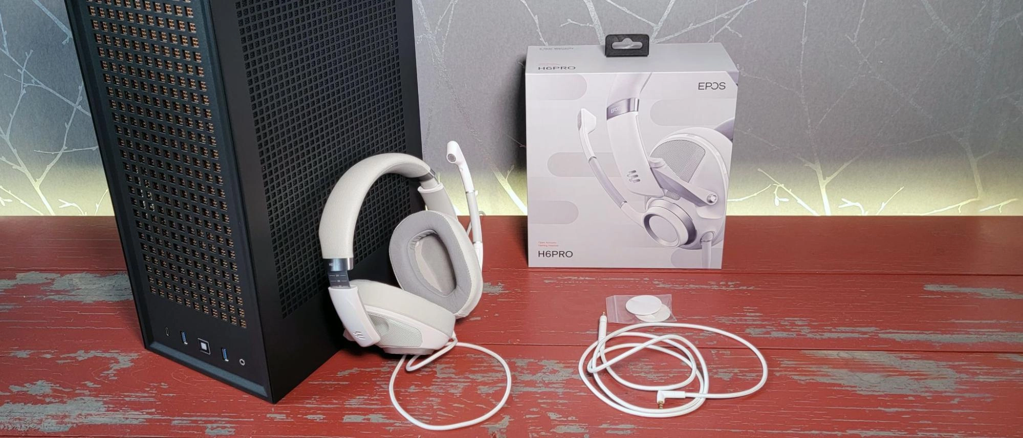 The overall look of the headset is a bit chunky compared to some alternatives, but the Epos H6Pro is an attractive headset in its ghost whte color. If you're after something darker, the headset is also available in sebring black and racing green (with gold and black accents).