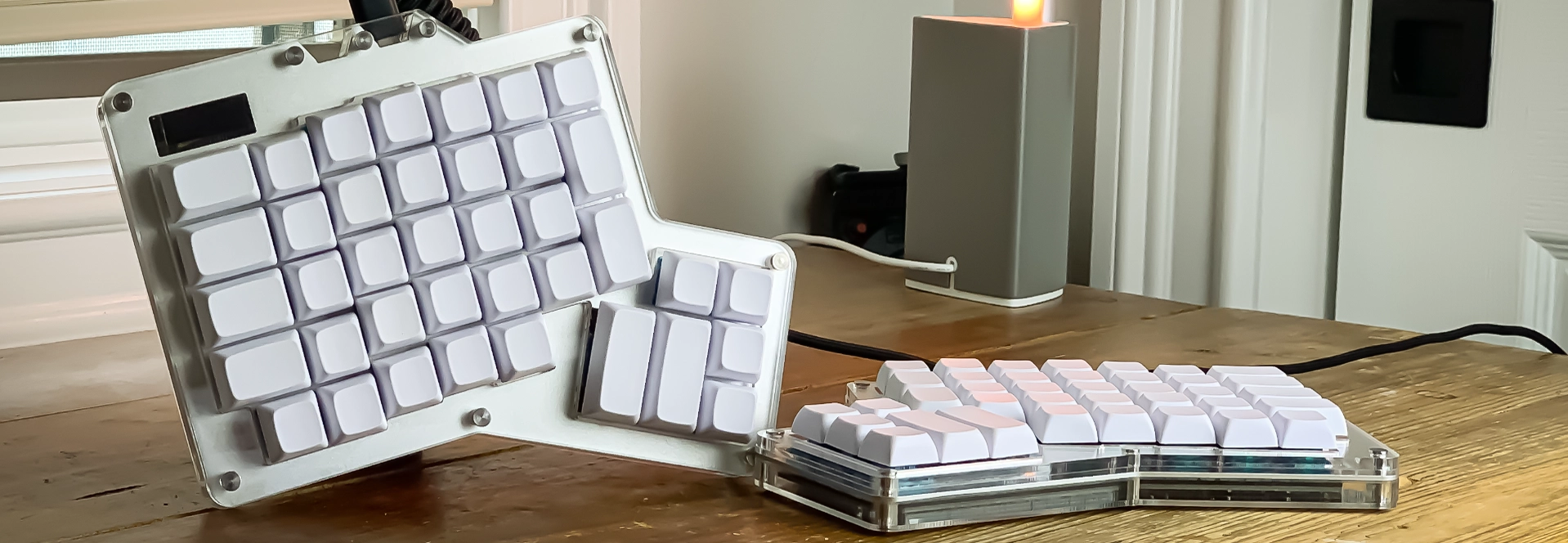 The Alpaca Keyboards ErgoDox 76 “Hot Dox” does a decent job of making the ErgoDox layout more mechanical keyboard enthusiast-friendly with its acrylic case, hot-swap PCB, LED screens and QMK/VIA support, plus it costs a fraction of the price of an ErgoDox EZ.