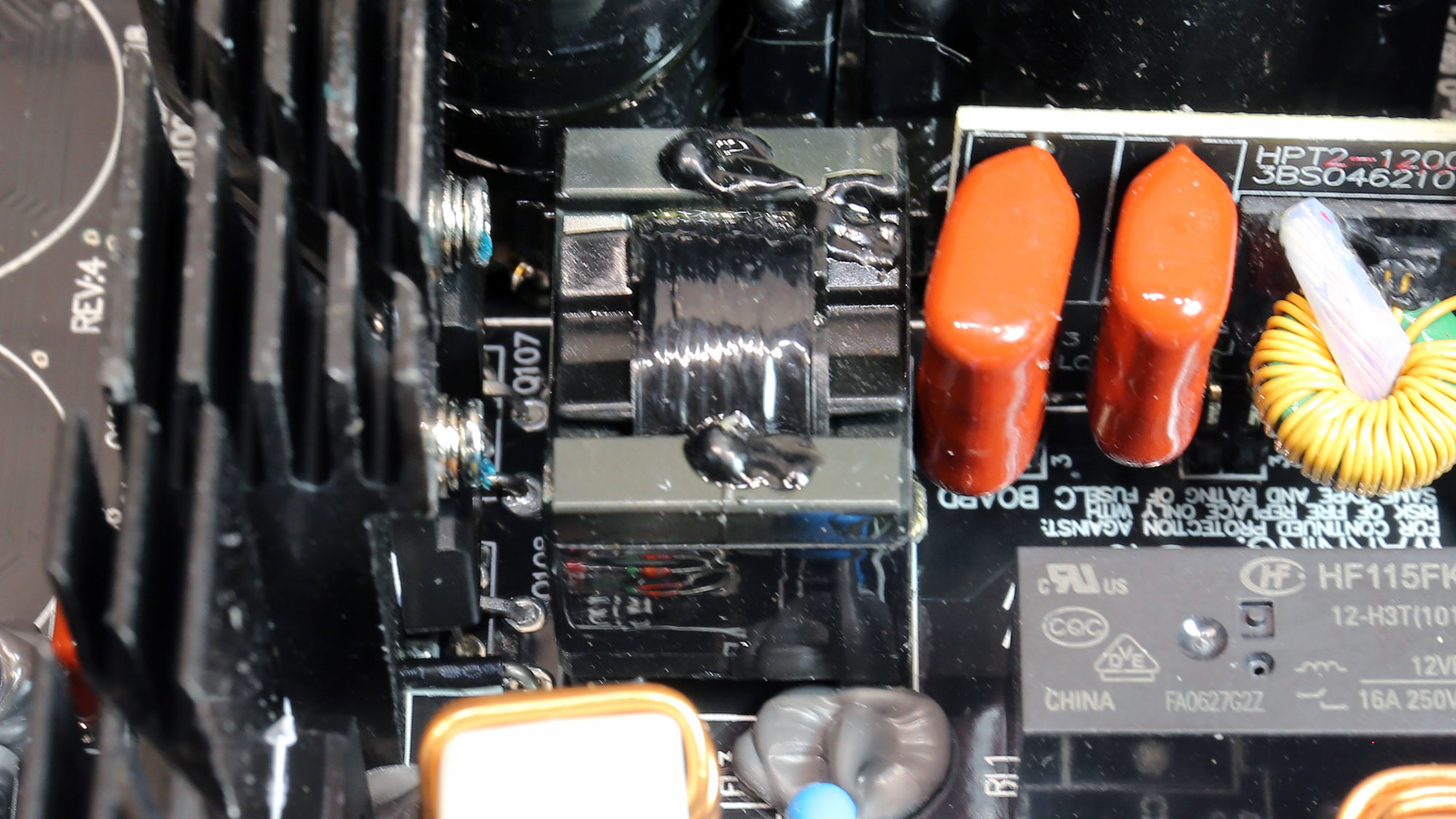 The heat sinks on both primary and secondary sides are super small if you consider a 1200W power supply. The PCB is also large enough to allow for good airflow, especially for the secondary side's electrolytic caps.