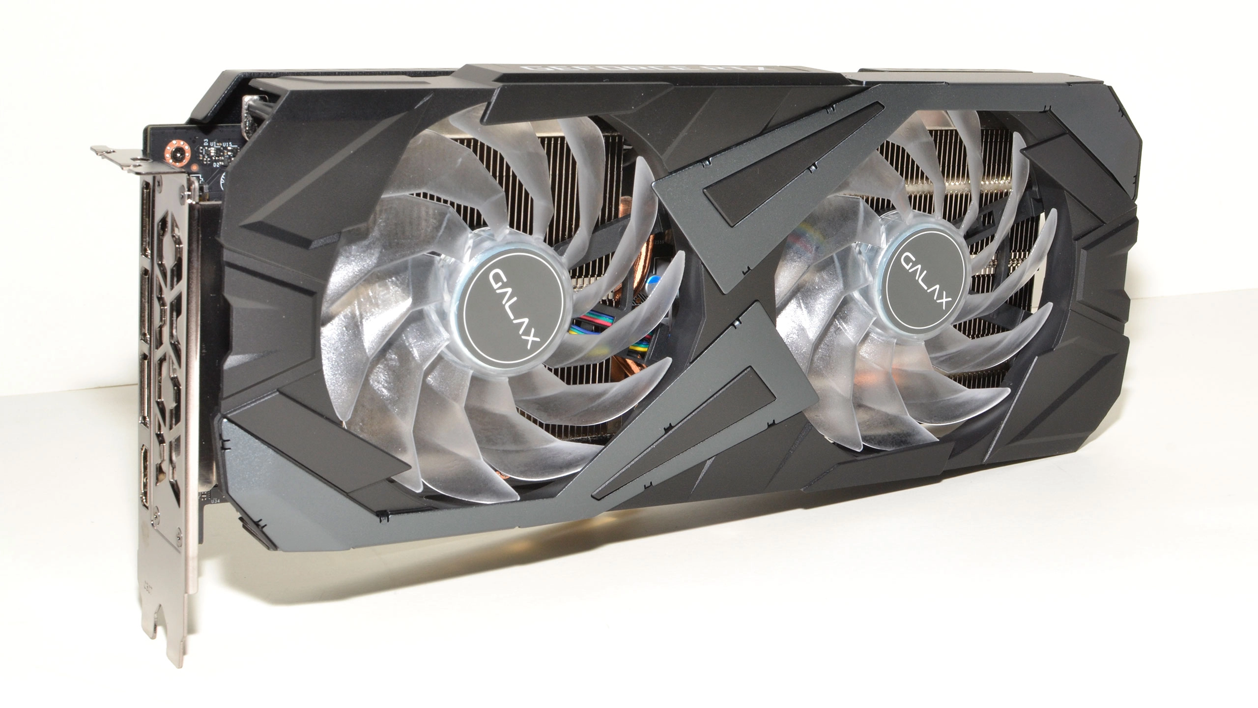 As you'd expect, the Galax card has a single 8-pin power connector, which should be more than enough for the card's needs. Near the power connector, Galax also includes RGB connections that allow you to synchronize the lighting with your motherboard and other peripherals if desired. Or if you prefer, you can install the Galax software suite to control the lighting effects.