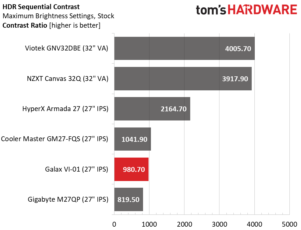 The VI-01 delivers good brightness in HDR mode with just over 363 nits peak. That’s enough to make a little extra impact in the highlight areas of the image. But with no dynamic dimming feature, black levels are the same as they are in SDR mode. That means contrast is the same as well. HDR delivers a bit more color saturation but that is all.